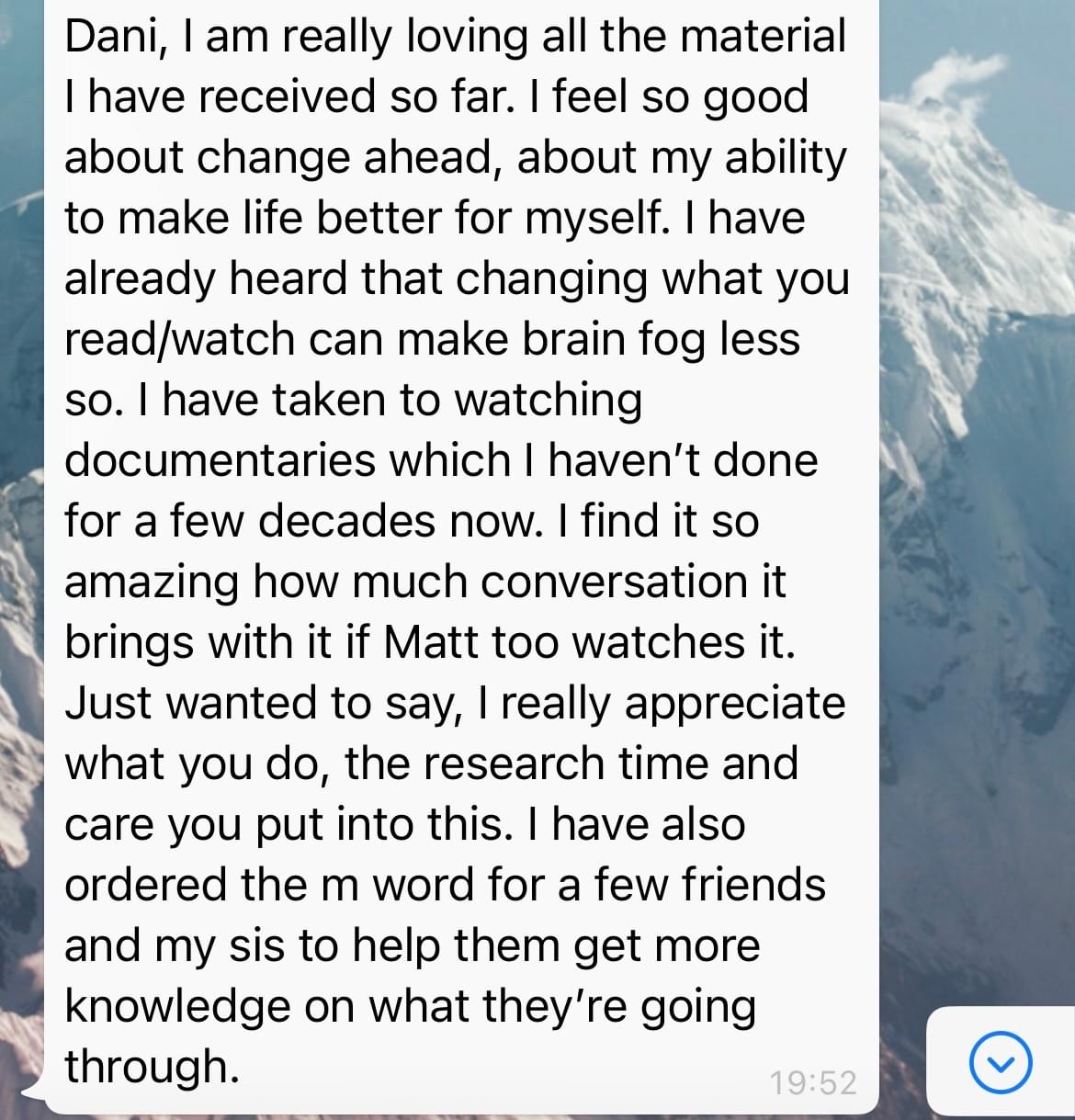 Access to your online learning hub, filled with interviews with some of the UK's top menopause specialists, explaining ALL your options. This is your educational hub to which you have access for 1 year.